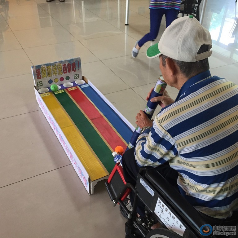 ▲台南市環保局運用資源回收材料,做成的「環保彈珠檯」等遊戲器材,提供社福單位,透過遊戲訓練院生肢體協調及腦部記憶。(圖/環保局提供)