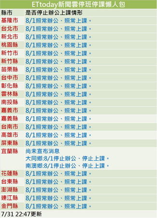 ▲第一手停班停課資訊,請鎖定ETtoday新聞雲。(圖/ETtoday新聞雲製表,資料來源:人事行政總處)
