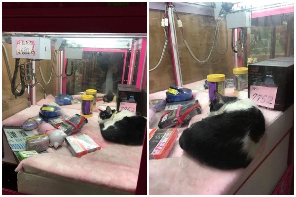 ▲喵星人躲娃娃機避寒,網友看了手癢想夾。(圖/翻攝自爆料公社粉絲專頁/下同)