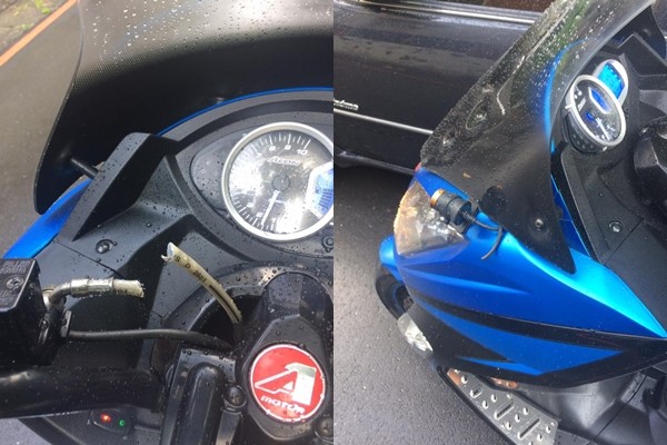 原PO指出,18日傍晚6時許將機車停在自家騎樓,到21日早上7時許準備要取車出門時,赫然發現剎車線被利刃剪斷,前後的行車記錄器也被剪掉,掛在車後的鏡頭還被拔走,而且整排的機車只有他的遭到破壞,氣得他立即報案求助,但卻因為監視器中並未拍到「犯案畫面」,因此警方也只能搖頭告知「無法處理」。