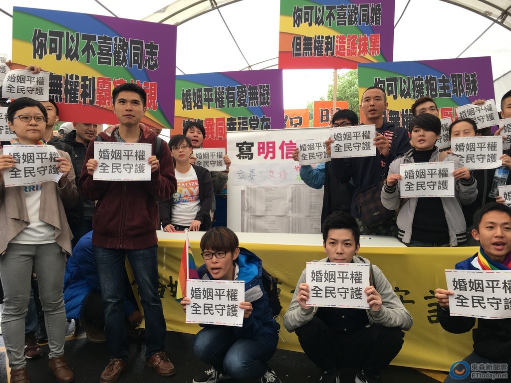 ▲伴侶盟在立法院外舉辦「婚姻平權,全民守護」活動。(圖/記者徐政璿攝,下同)