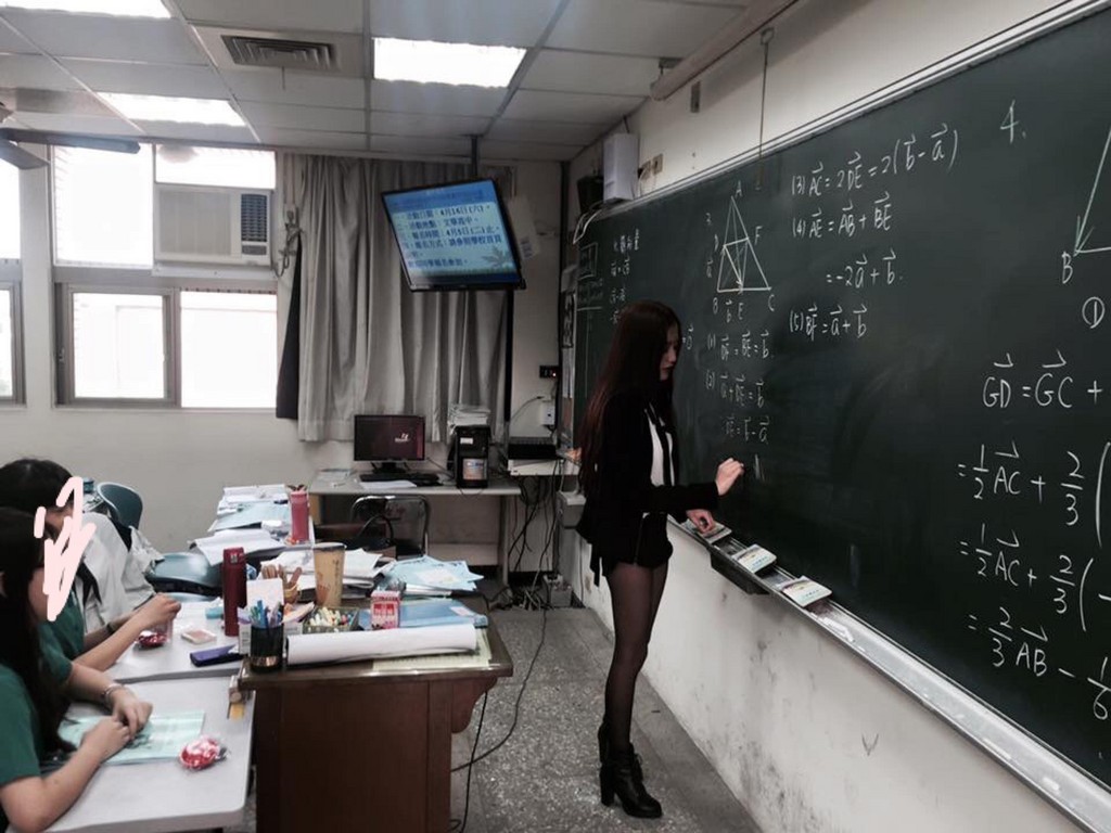 看到正妹老師,還是穿黑絲的辣妹款,網友又要暴動啦!一名網友貼出正妹老師在上數學課的照片,從台下學生制服能判斷,不是北一女就是台中女中;而這火辣側影讓網友們直喊,「老師我需要課後輔導」、「想要師生戀」。