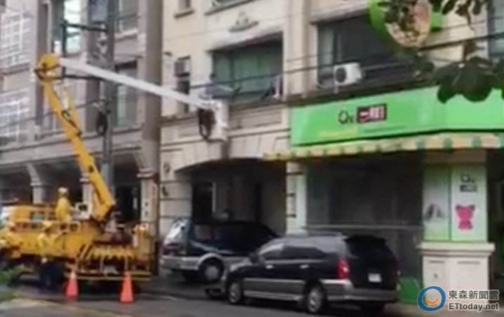 ▲刑事局幹員向台電商借高空作業車、工作服從2樓破窗而入。(圖/記者柳名耕翻攝)