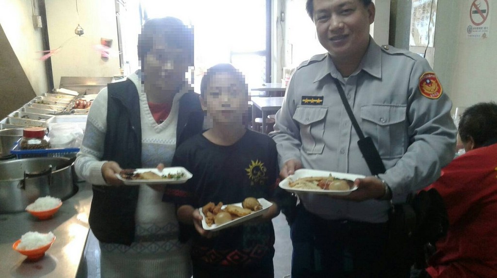 ▲副所長王建富在結束庭訊後請雲女母子吃午餐。(圖/翻攝自新竹縣警局粉專,下同)