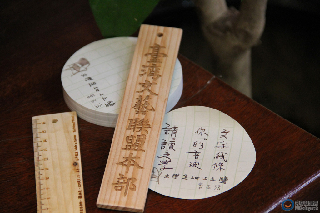 台文館廖振富館長表示,由台文館典藏的國家重要古物「台灣文藝聯盟本部」木匾,木匾複製品現於台文館常設展廳展出中,文物原件的由來是,在張深切及賴明弘等中部文學家的倡議下,1934年5月6日召開第一屆全島文藝大會,會後成立「台灣文藝聯盟」,從文學出發串連各領域,譜下台灣文化運動燦爛的一頁,此物件於1997年由張深切的家屬自南投取出,並由張深切的哲嗣張孫煜捐給館方典藏,在經歷戰爭、二二八事件、八七水災及家族遷徙等事件的60年後,仍完好如初,誠屬難能可貴。民眾也許會好奇再生木尺的刻度為何是16.5公分而非整數,因為是按原尺寸長寬約1:8比例縮小而產生的數字,這文學的刻度,將交到民眾的手上,細細度量,決定字裡行間的命運。