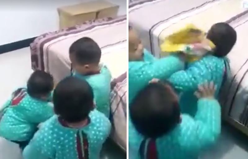 ▲屁娃三胞胎大亂鬥。(圖/翻攝自Shanghaiist)