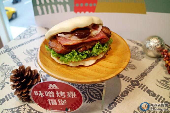 連鎖速食店也開始賣「刈包」了嗎?傳統美食的復古滋味難以抵擋,摩斯漢堡12月起上市3款新漢堡,其中「味噌烤雞福堡」外型就和刈包一模一樣,妙的是內餡改用西洋版的培根、蜜汁烤雞和花生醬取代,再搭配生菜一起吃,口味意外創新。
