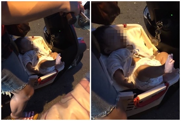畫面可見,外頭正飄著雨,台南氣溫頂多20度,但騎車的體感溫度更低,而一個娃娃卻直接被放上腳踏板,像載送貨物一般,完全沒有任何東西束縛住,且籃子已經明顯破裂,萬一前方路面出現大窟窿,後果不堪想像。不只如此,嬰兒身上衣物單薄,幾乎衣不蔽體,他抬著腳,趾頭彎曲,似乎正在無聲的求救,讓人看了相當不忍。