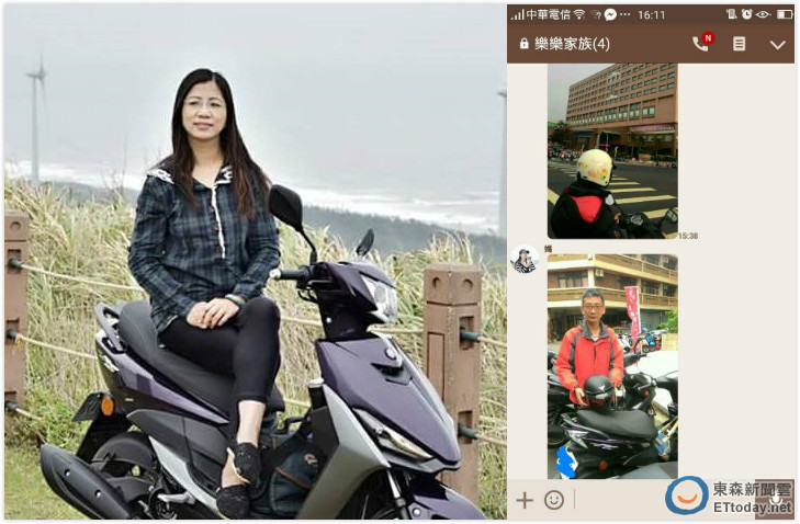 當天媽媽突然在家庭群組裡傳了一張照片,她心裡很想笑,直呼「不是要幫我寄車嗎?怎麼騎我的小老婆趴趴走,而且還跟老爸偷約會另類放閃,叫我這魯包怎麼認真上課」。