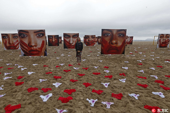 ▲模特兒扮演受害者抗議巴西,每72小時就有420人遭性侵。(圖/東方IC)
