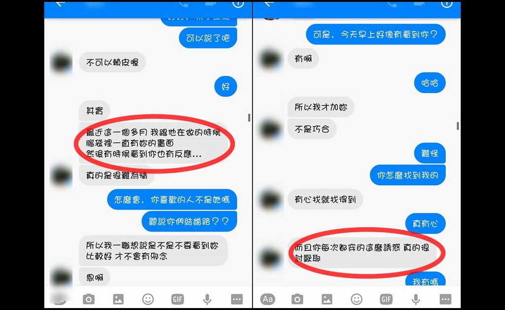 根據對話截圖,已婚男言談間豪不避諱愛慕之情,直說能在女子心中留下印象很開心;接著又說,就算是去認識其他女生,甚至發生性關係老婆也沒差,「但是基本尊重還是要有」。接著尺度全開,「最近這一個多月,我跟他在做的時候,腦袋裡一直有你的畫面,然後有時候看到你也有反應...真的是很難為情」、「一直想說是不是不要看到你比較好,才不會有邪念」、「而且你每次都穿的這麼誘惑,真的很討厭耶。」