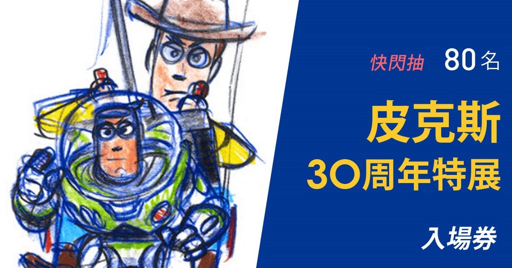 ◎得獎獎項:《皮克斯30周年特展》入場券 1 張,1張券可兩人進場,共40張。一個人限抽一份〈以手機號碼為準〉。