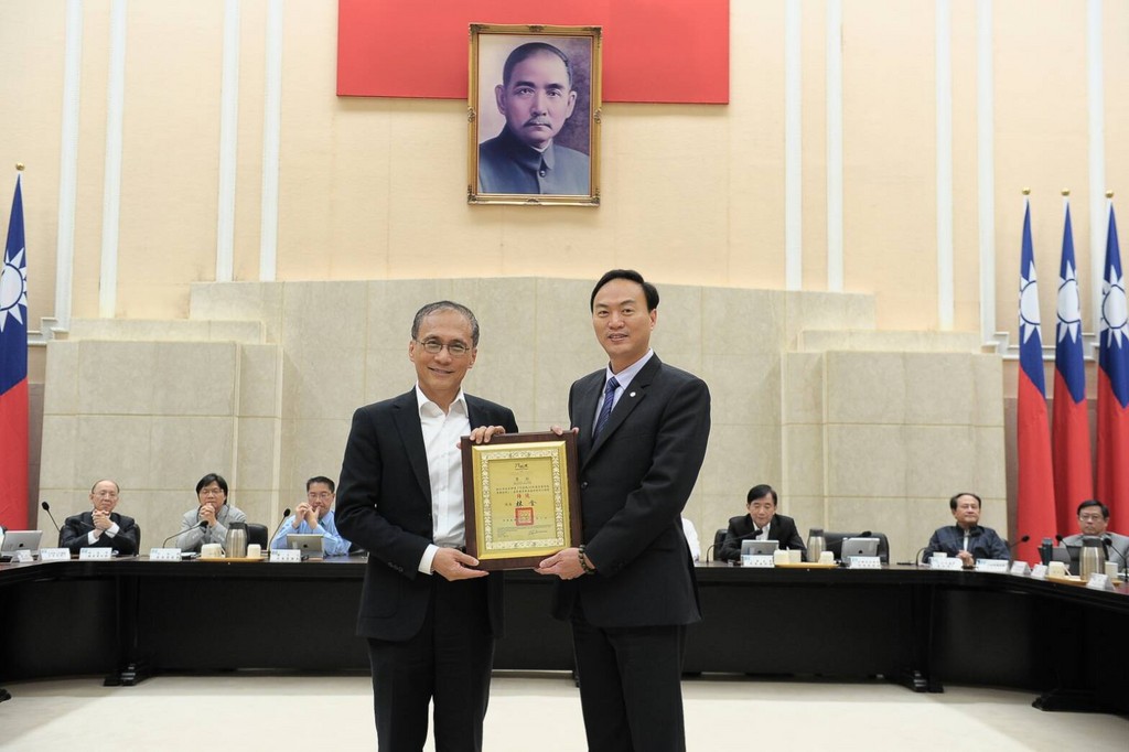 ▲行政院長林全頒發績優獎牌乙面,由新竹市消防局代理局長李世恭代表受獎。