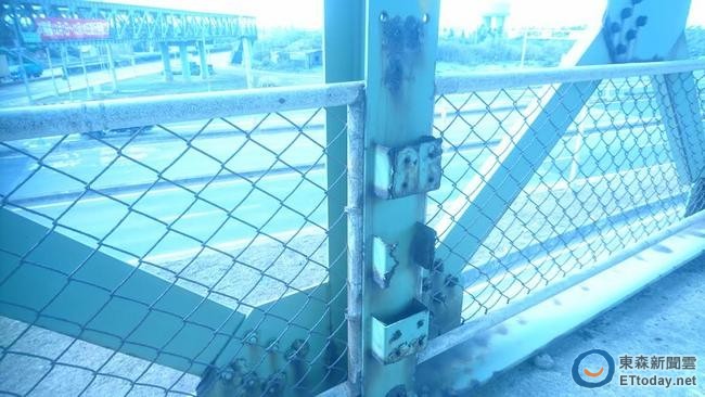 ▲陸橋到處锈蝕斑斑。(圖/記者楊熾興攝)