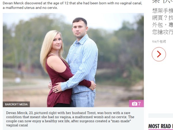 根據《太陽報》(The Sun)報導,家住美國喬治亞州的23歲女子戴雯(Devan Merck),12歲時被診斷出是先天性無陰道的患者,除了沒有陰道之外、也沒有子宮頸、子宮發育也不正常。戴雯的同學得知後,開始嘲笑她「怪物」、「妳是男生來反串的吧!」
