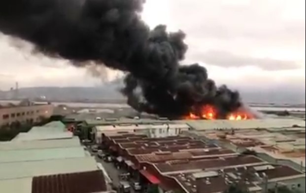 ▼蘆洲民族路一處連棟鐵皮工廠發生大火。(圖/記者林煒傑翻攝)