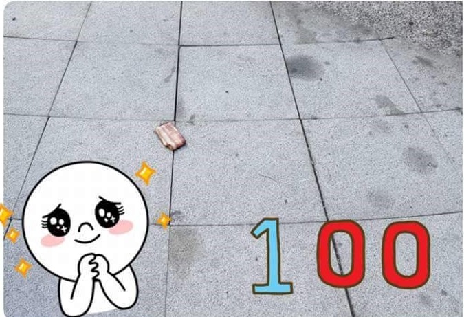 地上竟然有鈔票!一名網友在臉書爆廢公社PO文表示,日前午休與同事外出吃飯,途中遠遠的就看到地上疑似躺了一張100元紙鈔,同事興奮地大步往前跑,沒想到近看才發現,躺在地上的竟然是「一片培根」!