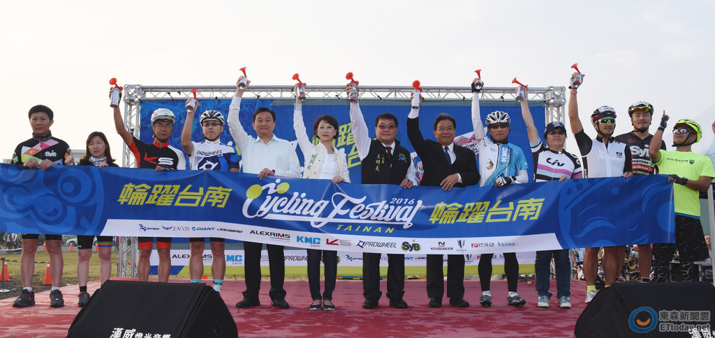 ▲「輪躍台南」2016台南單車嘉年華,由立委陳亭妃、台南市副議長郭信良、聖母廟主委王明義等人鳴笛出發。(圖/聖母廟提供)