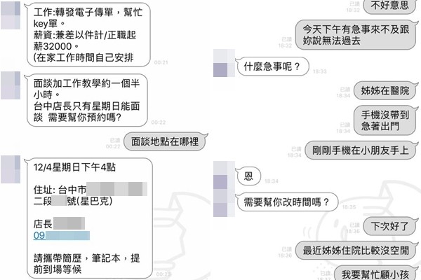 原PO表示,日前在某社團發現一家團購公司應徵整理訂單人員,私訊業者連繫後約好4日下午4點要進行面試,但當天原PO卻因為姐姐突然生病進醫院無法到場,業者卻因此要求原PO協助在個人臉書張貼公司徵人文,還要求她必須互加臉書好友。