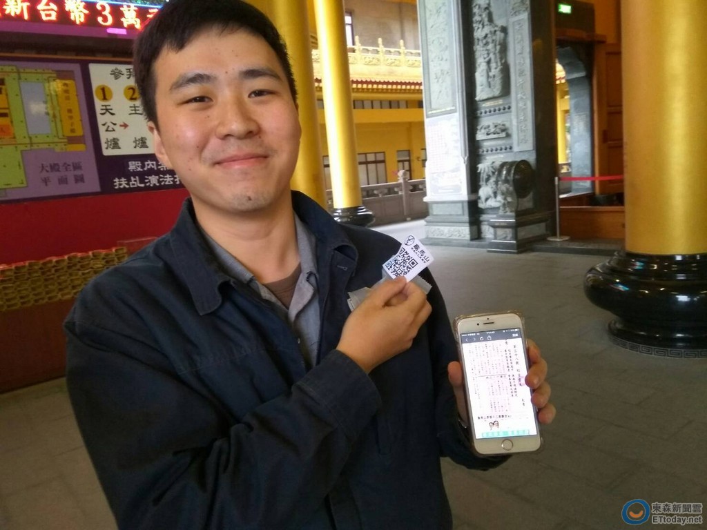 ▲夾到的籤詩其實是QRcode,用手機掃一下,就可以看到籤文,連千意都有。(圖/記者楊佩琪翻攝)