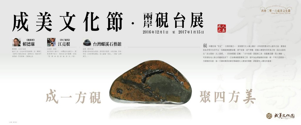 ▲「成美文化節」即日起至107年1月15日,在成美文化園區首度舉辦成美文化節‧【兩岸硯台展】,這段期間成美文化園區全面開放民眾參觀。(圖/成美公堂提供,下同)