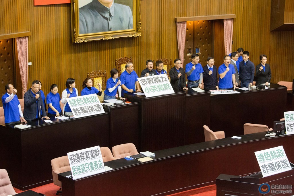 ▲國民黨一早佔領主席台,力阻民進黨版本《勞基法》修法。(圖/記者季相儒攝,下同)