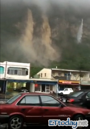 ▲花蓮秀林崇德蘇花公路山邊,2日出現罕見的「瀑布群」(影片拍攝者為周詩涵,圖/取材自楊夢龍臉書,《ETtoday新聞雲》已獲同意轉載)