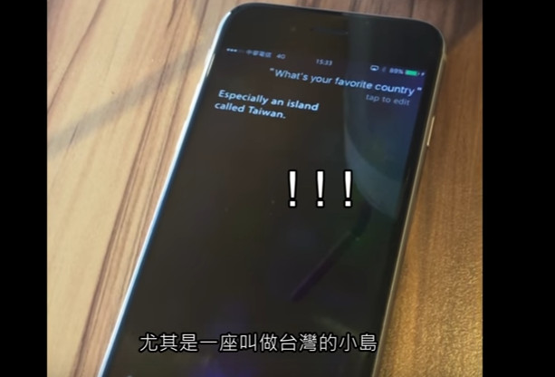 影片中,使用者詢問「Siri是否有朋友?」Siri也相當官腔的回答,直到被逼問「最喜歡的哪一個國家?」一開始Siri可能擔心有政治傾向問題,一度拒絕作答,直到再次被逼問時才釋放自己,熱血表示最愛的是「台灣!台台台台灣~」並送上101及日月潭的照片、大喊「Taiwan Number one」,讓使用者超驚喜。