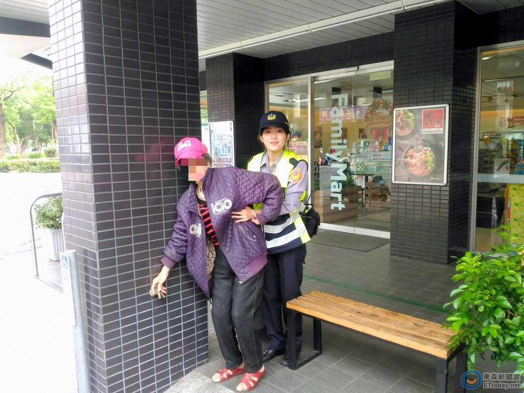 市警六分局金華派出所副所長郭政賀、警員蔡汶珊,6日上午11時許巡邏時接獲通報,一名年邁老嫗於南區金華路二段與建南路口,一間全家便利超商外獨坐多時,2人立即前往了解,到達現場後發現老嫗神情呆滯而落寞,員警上前關心與安撫,再詢問其身分及住址,惟老嫗仍是一臉茫然且答非所問,此時才察覺老嫗應有失智情形。