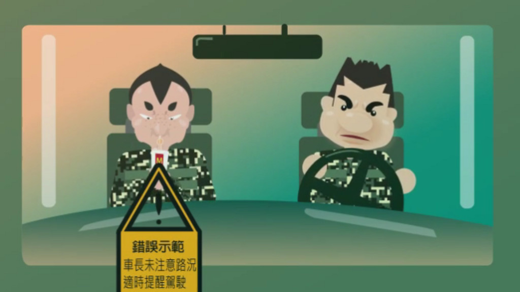 陸軍司令部指出,從行車肇禍的數據分析,其中以轉彎不當、未保持安全車距及任意變換車道的比例最高,這次製作「行車安全停看聽」宣導動畫,即以此為故事主軸,每一集內含一個宣導重點,從案例中將道路行駛的技巧及規則,以趣味動畫方式讓官兵瞭解。