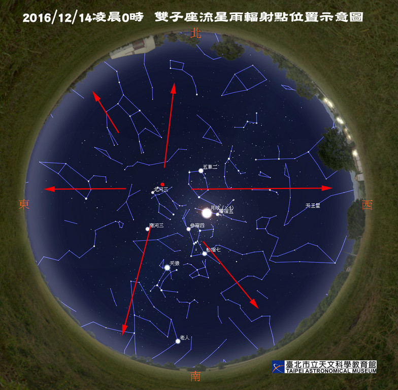 ▲雙子星流星雨輻射點位於東北偏東方(圖/台北天文館提供)
