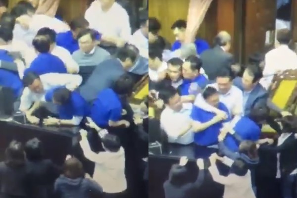 立法院6日晚間將《勞基法》相關修法強行三讀通過,不只院外抗議民眾吵翻天,就連院內立委們也在主席台上打成一團。國民黨文傳會副主委王鴻薇在臉書公布影片,指控民進黨立委王定宇暴勒國民黨立委陳宜民,「這不是暴力,什麼才是暴力?」