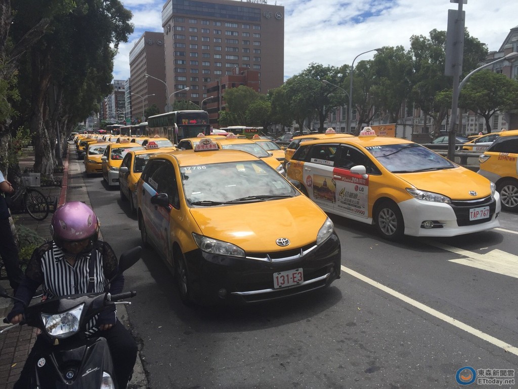 ▲計程車日前包圍行政院抗議Uber上路。(圖/記者張暐珩攝)