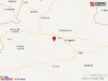 ▲新疆昌吉州呼圖壁縣於8日下午1點15分發生規模6.2強震。(圖/翻攝自新疆地震局微博)