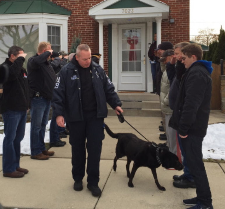 芝加哥警局一頭名叫「鮑勃」(Bob)的警犬罹患腦癌,為了讓牠少受一些痛苦,警隊決定對牠進行安樂死。12 月 7 日,警犬被送往醫院結束生命當天,警隊上的同袍列隊敬禮向牠道別,送牠最後一程,場面讓人鼻酸 。