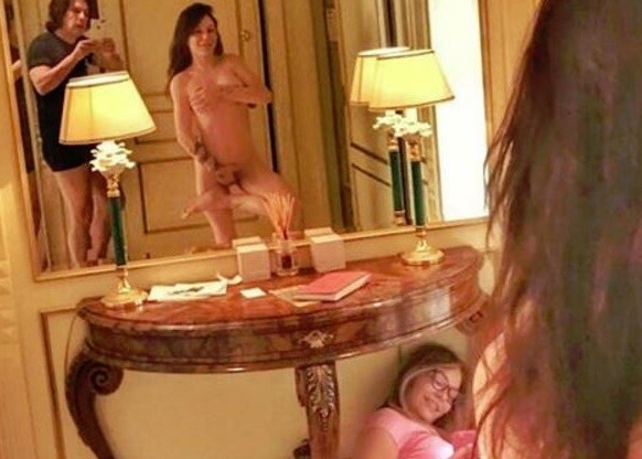 李維莉在貼文表示,「真是我們家的瘋狂早晨」,只見她全裸站在鏡子前,用左手臂遮住胸部,右手則是擋住私密部位,不過,最令人意外的是她爸媽也在鏡子前觀賞,並拿出手機拍攝,歐奈拉·慕提側躺在桌面下,克賀夫則是站在她身後拿著手機,全家都露出開心的笑容。