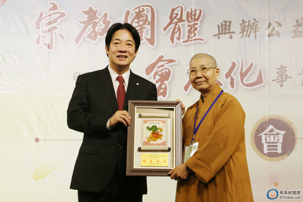 ▲台南市長賴清德頒發獎牌,表彰宗教團體興辦公益慈善暨社會教化績優卓越。(圖/市府提供)