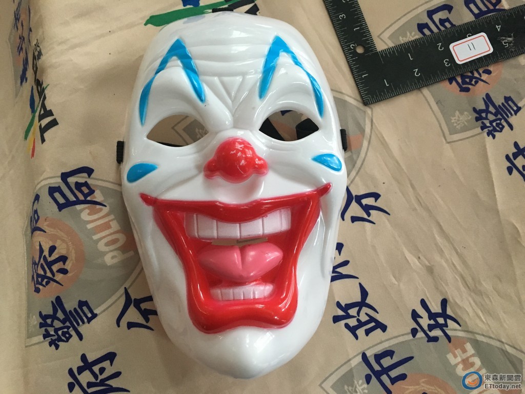 ▲慘白的臉、斯牙咧嘴,江姓男子就是戴著這頂「小丑」面具,行竊自助洗衣店。(圖/記者楊佩琪攝)