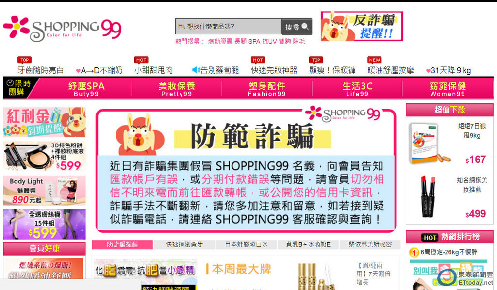 刑事局強調,Shopping99主要販售美妝保養、塑身、紓壓產品,女性消費群龐大,卻也成了歹徒眼中肥羊,詐騙件數高居不下,且被害人多為7、8年級女大生,集中在今年9月、10月被害。刑事局懷疑,恐怕是詐騙集團在近期駭入Shopping99內部網站,竊取客戶資料。