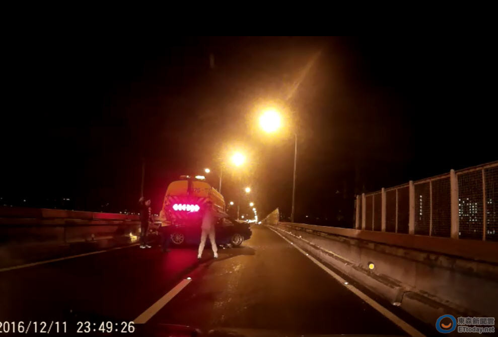 11日晚間11點多,台北市水源快速道路上發生死亡車禍。3輛轎車疑似競速狂飆,27歲高姓駕駛的車卻撞上掃街車,整個車身右半邊「卡進」掃街車底,高姓駕駛送醫後不治。而事發時,一名榮總醫師經過,熱心上前幫忙救援,還有熱心民眾協助指揮交通,但高男的朋友早已逃逸無蹤。