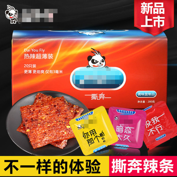 ▲零食「辣條」包裝和知名保險套過於相像,害重慶劉女與老公離婚。(圖/翻攝自淘寶網)