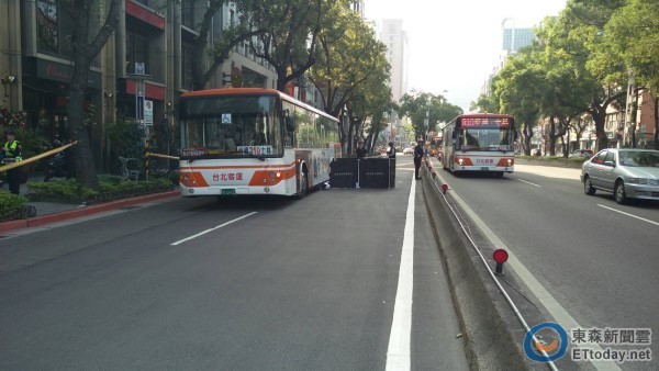 ▲北市中山北路一段13日上午發生公車輾斃機車騎士的意外。(圖/記者楊佩琪翻攝)