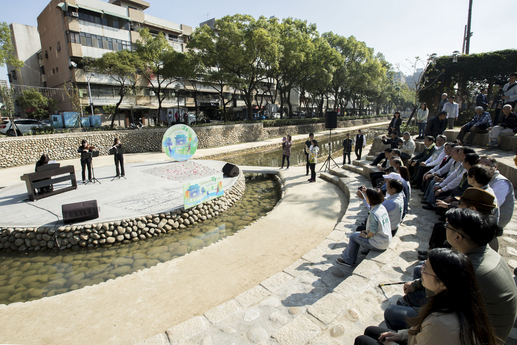 至於原本噴水設施處,則改造成橫跨河道的圓形舞台。林智堅市長指出,原噴水設施的抽水機組需要高額維管費,加上設施稜角很多,對孩子安全造成隱憂,改建成圓形舞台後,提供藝文團體更多表演空間,也增加市民周末休閒的好去處。