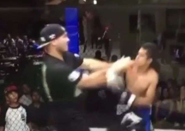 拳擊手有鬥志是好事,但還是要搞清楚對象!國外一名格鬥賽拳手日前比賽時,遭到對手一陣猛攻後倒地,但他隨即再度站起身,展開如暴風雨般的反擊。不過他卻沒注意到,站在自己面前的竟然是裁判卡馬喬(Frank Camacho),如雨點般的拳頭直接命中對方。雖然無辜挨了數拳,但裁判卻沒有生氣,反而誇讚他「擁有大和魂」。