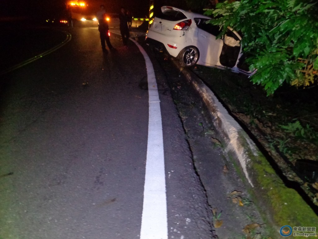 警方說,員警據報到達後,發現A車駕駛鄧姓民眾自稱與陳姓民眾所駕駛之B車發生同向擦撞,致使陳某所駕駛之B車衝出車道,撞擊路旁道路反射鏡,車輛卡在路面邊坡,車頭嚴重損毀、車室前座2顆安全氣囊爆開,A車僅左側前保桿擦損。