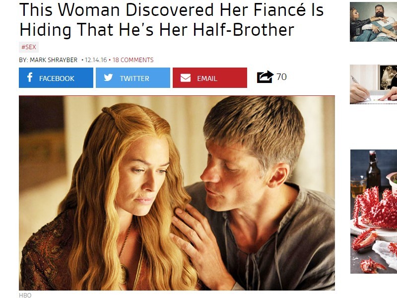 「告訴我,這一切都不是真的!」美國一名女子日前在知名論壇「Reddit」發文,提到自己已經和男友結婚,即將要步入禮堂。沒想到她前陣子發現天大的祕密,男友竟然是她「同父異母」的哥哥;更讓她難以接受的是,這件事情男方早在1年前就知道。她問對方為何不早說,男方說「我怕妳會離開我!」