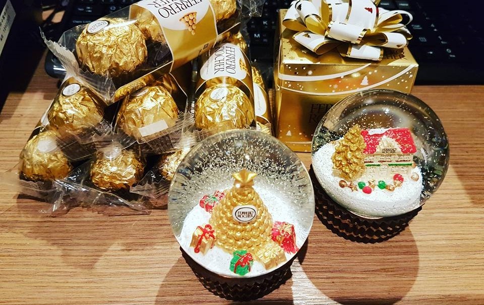 ▲限量贈送的「金莎聖誕水晶球」。(圖/翻攝爆廢公社)