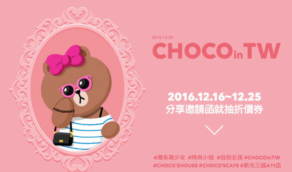 今年初 Line 才於日本推出 Line 旗下新角色熊美(CHOCO),也就是熊大的妹妹(明明就女裝熊大),而近期官方也正式宣佈,將於 12/23 聖誕前夕,於新光三越台北信義新天地 A11 打造全新概念店面,其中也將以熊美為主題外,也有不少加碼優惠活動。
