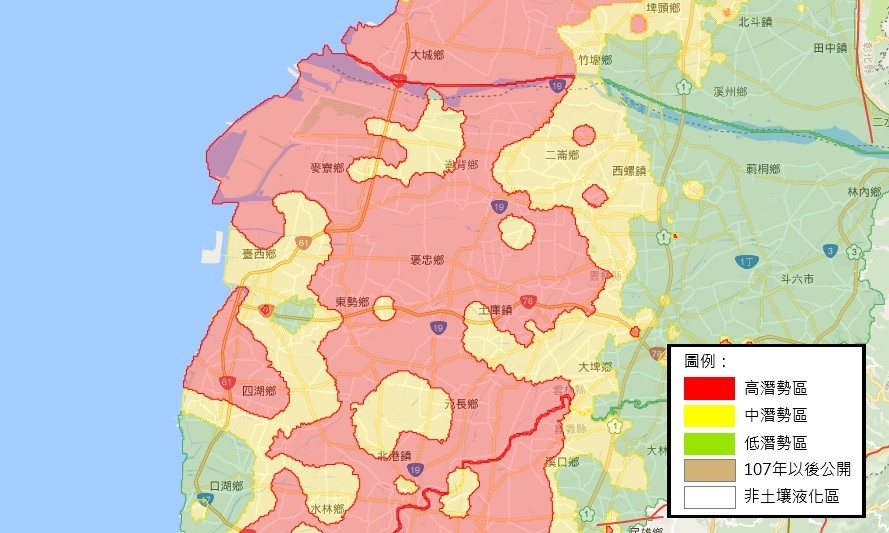 經濟部中央地質調查所於16日公布「第二波土壤液化潛勢圖」包含:台中市、彰化縣、雲林縣、嘉義縣及嘉義市,共92個鄉鎮區供民眾查詢,推動「土壤液化潛勢地區改善」和「協助私有老舊建築物耐震性能評估與補強」的「安家固園計畫。」
