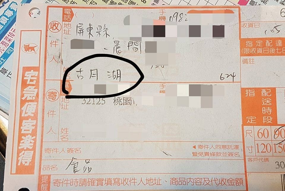 原來笑話都是真的!屏東一位胡姓女網友在臉書爆廢公社PO文,表示日前訂貨時對方詢問姓氏,她告知是「古月胡」,沒想到收到包裹時,姓名欄真的填上「古月湖」,讓她當場傻眼,「我還以為網路上那些都只是笑話......。」